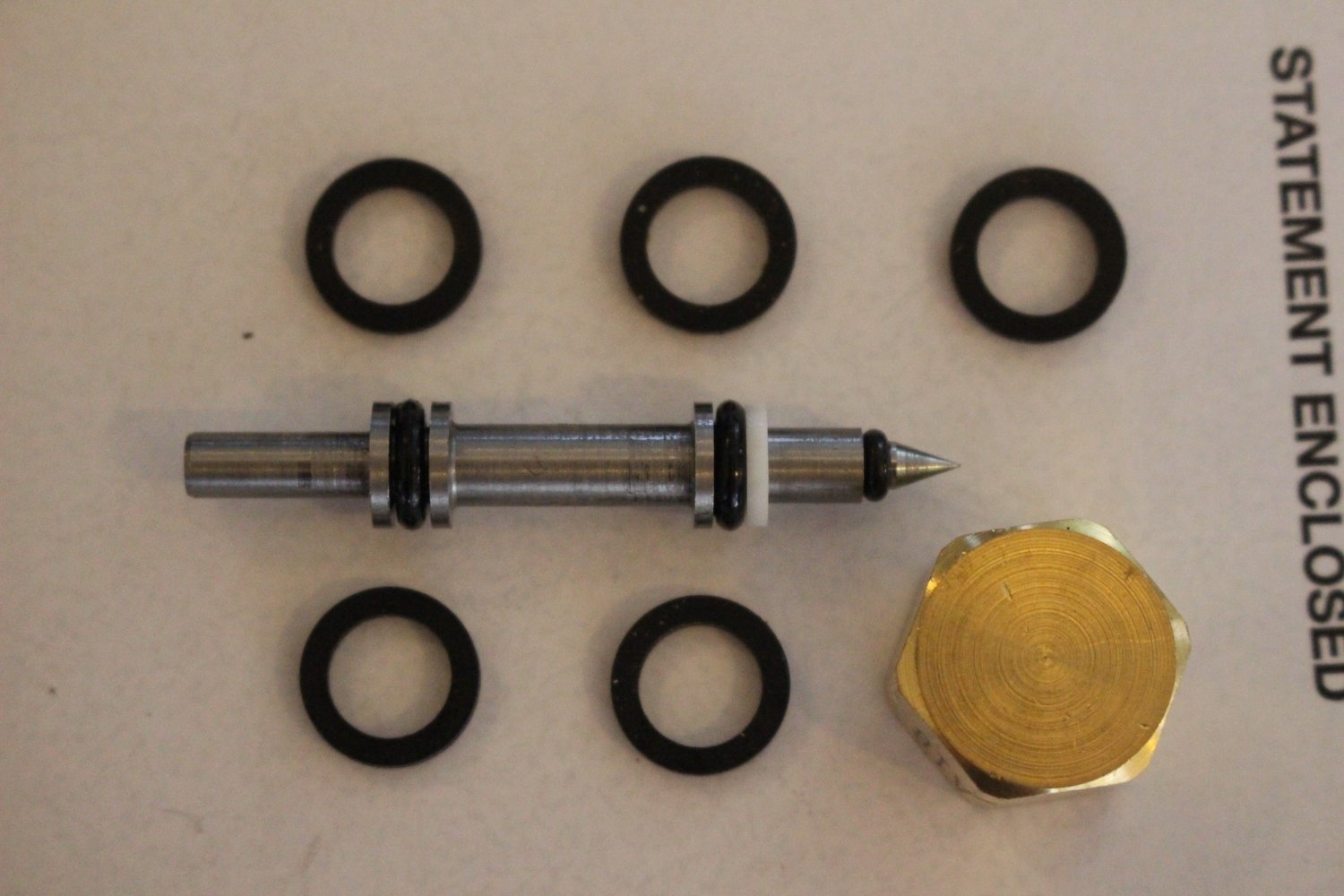 -brand new spool with newly engineered viton tip (the spool is inside the check valve and is held in place by a spring and a cap. You will need to re-use your spring. They do not wear out.)
